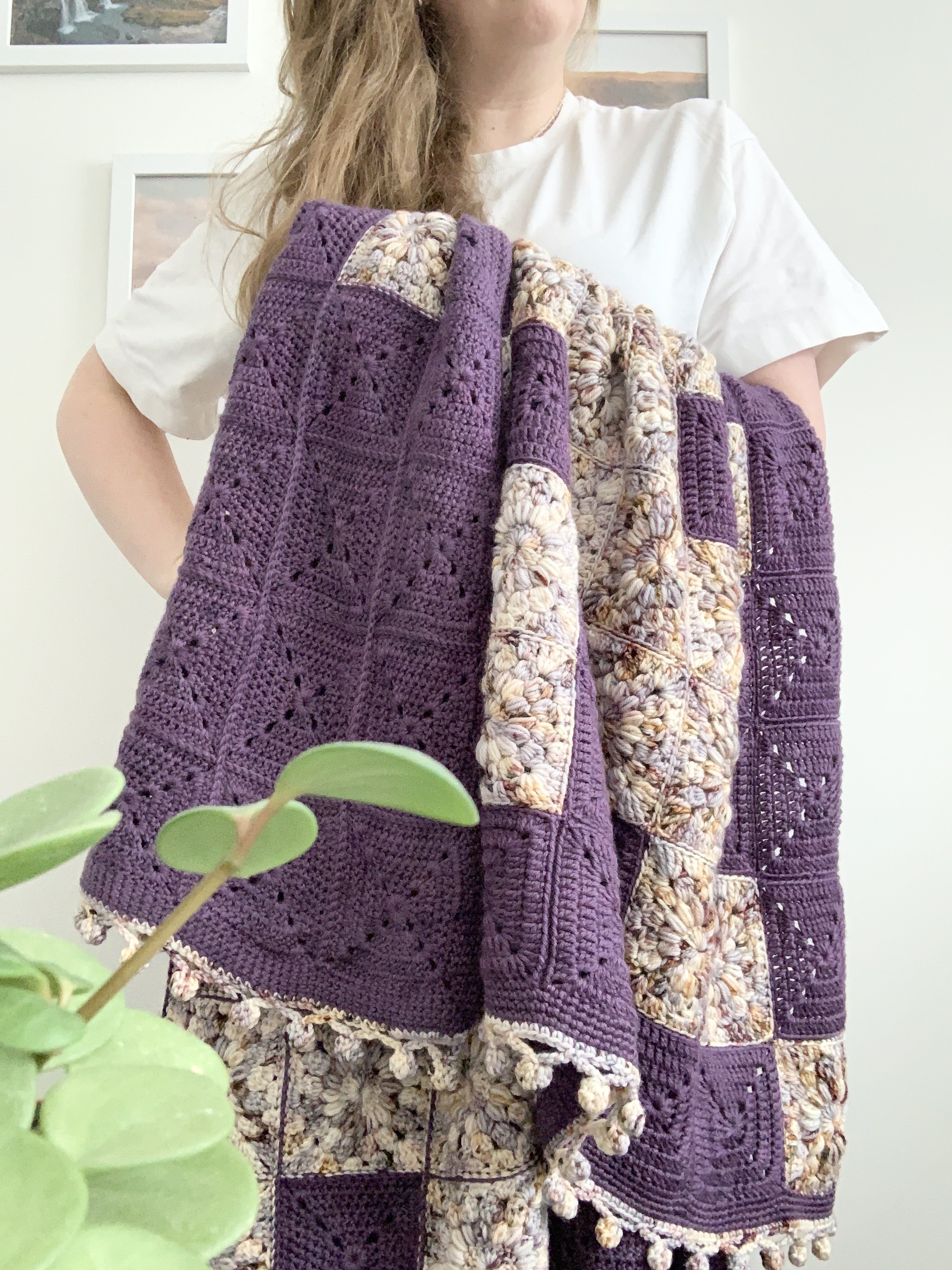 Want all the colour without the work? This is the blanket for you! Using a self striping yarn to make solid motifs is not only satisfying—but quick (and without all those ends to sew)!