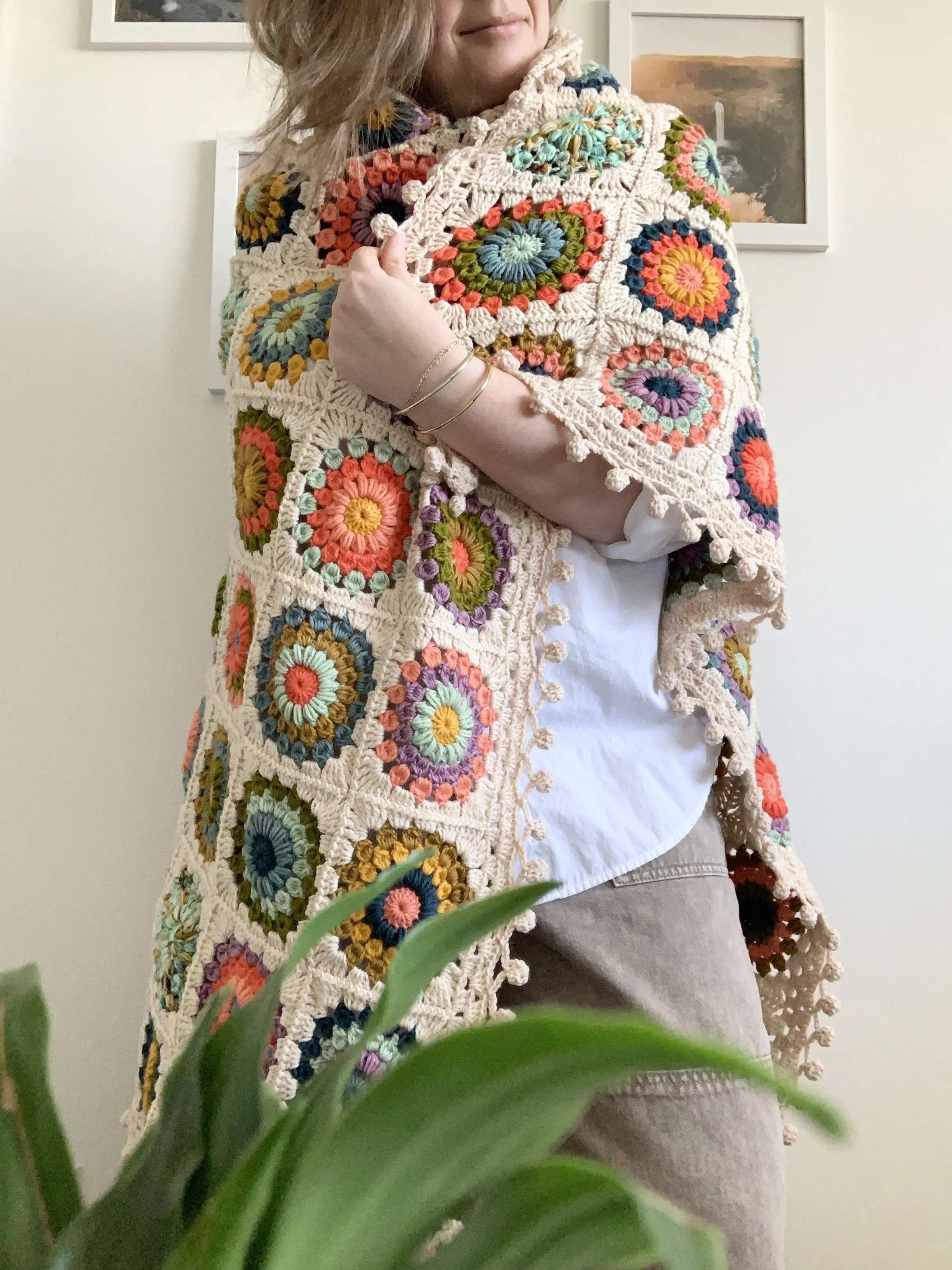 ***Please see video tutorial below for how to crochet the Large Sunburst Granny Square (NOTE: The 5th round is different in the video tutorial—I’ve added 1 extra DC to the granny shells for this blanket pattern):